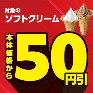 対象のソフトクリームが今なら本体価格から各50円引き!ミニストップアプリ・ミニストップアプリ版モバイルオーダークーポンご利用でさらに50円引き!この機会にぜひお試しください!