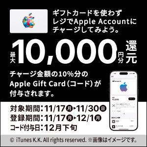 Apple Accountに5,000円以上チャージすると最大10%分のApple Gift Card(コード)がもらえる!