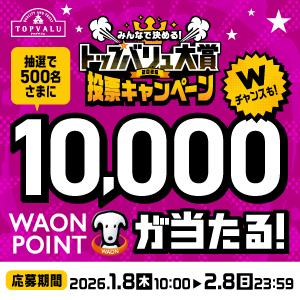 抽選で500名さまに10,000WAON POINTが当たる! 詳しくは画像をクリックしてキャンペーンページをご確認ください。