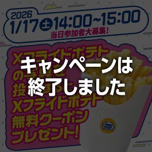 指定の時間内にXでみんなのXフライドポテトの写真を投稿してね!参加者全員にXフライドポテト無料クーポンプレゼント!※キャンペーンは終了しました。