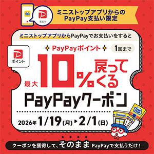 事前にPayPayアプリでクーポンを獲得して、ミニストップアプリからPayPay決済すると最大10%戻ってくる!