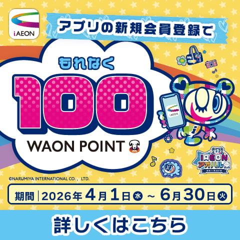 iAEONアプリの新規会員登録で、もれなく100WAON POINTを進呈いたします。