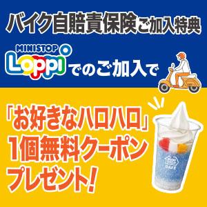 Loppiバイク自賠責保険ご加入特典 MINISTOP Loppiでのご加入で「お好きなハロハロ」1個無料クーポンプレゼント!