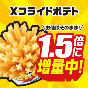 お値段そのまま!Xフライドポテトが1.5倍に増量中!