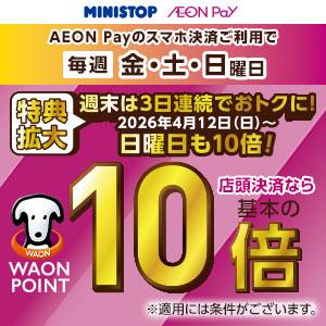 AEON Payの店頭決済なら、毎週、金・土曜日に加えて、「日曜日」も3日連続でWAON POINTが基本の10倍になります!