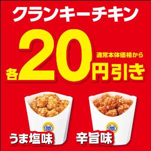 クランキーチキンが通常本体価格から各20円引き!この機会にぜひお試しください!