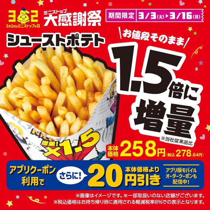 【期間限定】お値段そのまま!シューストポテトが1.5倍に増量中!
