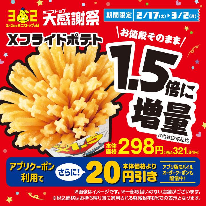 【期間限定】お値段そのまま!Xフライドポテトが1.5倍に増量中!