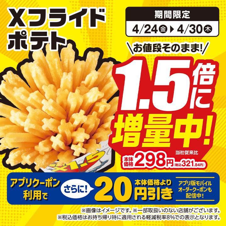 【期間限定】お値段そのまま!Xフライドポテトが1.5倍に増量中!