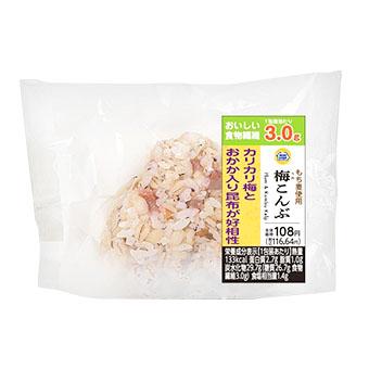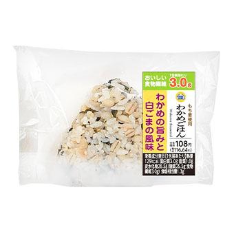 - 白だしで炊き上げたもち麦入りのご飯に、わかめと白ごまを混ぜ込んだおにぎりです。わかめの旨みと白ごまの風味がお楽しみいただけます。