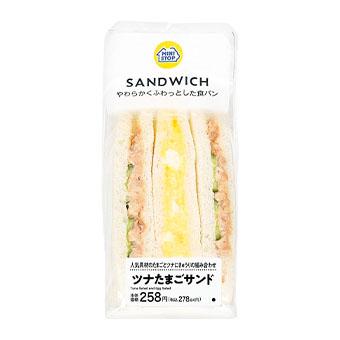 - 旨味の強いカツオのみを使用したツナサラダと、コクのあるたまごサラダのサンドです。きゅうりが食感のアクセントになっています。