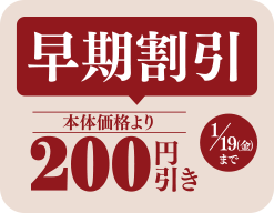 - このマークの商品が早期割引対象です。2024年1月19日(金)までにご予約いただくと、対象商品が本体価格より割引になります。また、本体価格は早期割引前です。