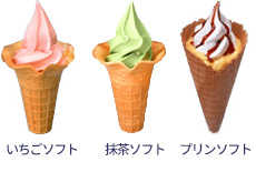 ソフトクリームバニラ、カリフォルニアいちごソフト(カップ)、チョコナッツソフト(カップ)